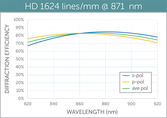 We routinely provide gratings operating at wavelengths ranging from 300 nm to 2500 nm, and will look at designs outside this range upon request. Our high efficiency gratings may be optimized for narrow wavebands, or over bandwidths spanning hundreds of nanometers.