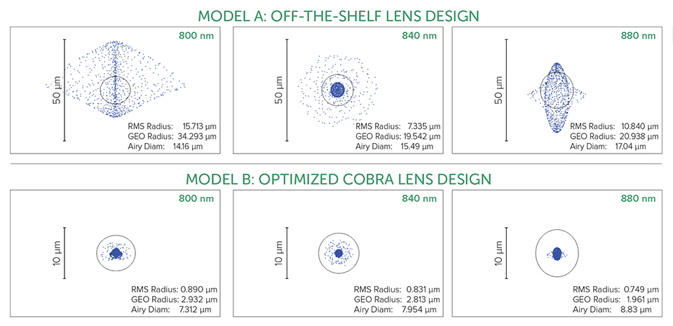 In swept-source OCT (SS-OCT), the laser is scanned in wavelength, and a single-element photodetector captures the signal. In spectral-domain OCT (SD-OCT), a broadband laser source is used in combination with a multi-element detector like a spectrometer. SS-OCT offers high speed and low roll-off (we’ll explain that term later) but is expensive due to the high cost of swept-source lasers. SD-OCT yields better resolution at lower cost, but it wasn’t able to compete on speed and roll-off performance – until better imaging cameras were introduced, several years ago. At Wasatch Photonics, we were the first to integrate these new cameras into our Cobra-S OCT spectrometer product line to offer industry-leading SD-OCT, starting in 2017.