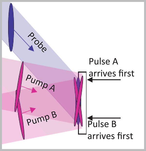 Third, they created a fast time-gate by scanning the delay between the two EUV beams. In conventional FROG, the pump-probe beam delay would be scanned, with a nonlinear process called four wave mixing (FWM) providing a near-instantaneous material response that acts as a shutter. At EUV wavelengths, however, photoionization is the dominant process, with recovery on the order of picoseconds – an effect that blurs detection. FWM does still occur, but only near time zero. Since the transient grating is created only when both EUV beams are present, or only so long as the material ‘memory’ of the first beam survives until the second beam arrives, scanning the delay of one pump beam through the other in time creates a near-instantaneous response analogous to the FWM used in conventional FROG, and which can be modeled to extract the needed information at detection.