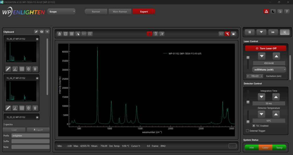 We believe that spectroscopy software should be intuitive, easy to learn, and packed with convenient features to simplify data acquisition. And it should be free! Our ENLIGHTEN™ spectroscopy software has all the features you need to quickly and easily collect Raman, absorbance, transmission, reflectance, or emission spectra from Wasatch Photonics spectrometers.
