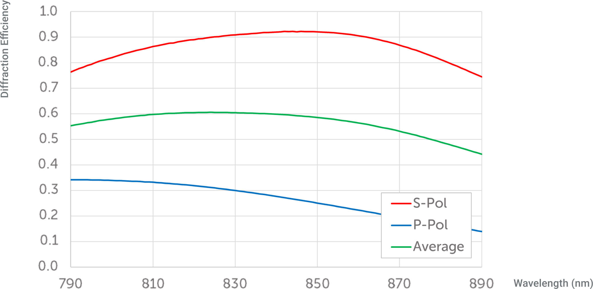 Efficiency is high for both s- & p-polarization, and varies smoothly -