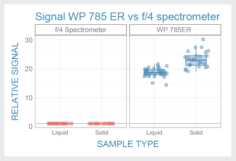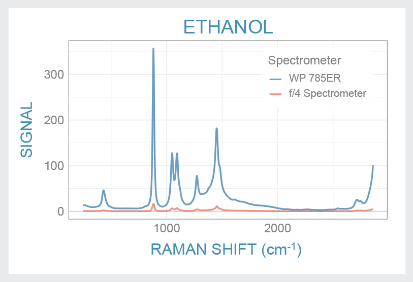 Raman is a low-light technique, which makes every photon precious. A general-purpose compact spectrometer may not have the sensitivity needed to capture sufficient Raman signal without accumulating excess background noise. The ideal portable Raman spectrometer is designed around a few simple principles – collect more light, keep more light, detect more light. We design every Wasatch Photonics portable Raman spectrometer for maximum sensitivity – to collect more signal from weak Raman emitters compared to other spectrometers. Even low concentrations can be measured, thanks to higher signal and cleaner spectra.